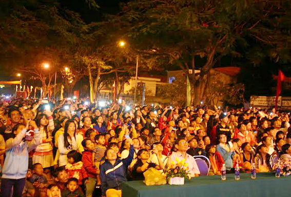 | Các đồng chí lãnh đạo tỉnh, thị xã và nhân dân Long Khánh cùng xem màn bắn pháo hoa |
