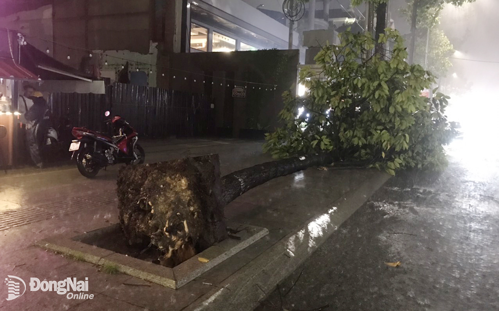 Tiếp đó, cơn mưa kèm gió mạnh vào khoảng 21 giờ ngày 22-6 làm 1 cây dầu lớn được trồng trên vỉa hè đường Võ Thị Sáu (thuộc P.Thống Nhât) bị bật gốc và ngã đổ. May mắn là cây xanh ngã đổ dọc theo vỉa hè, mặt khác thời điểm này mưa lớn, đường vắng, ít người qua lại nên không làm bị thương người đi đường. Đường Võ Thị Sáu là tuyến đường trung tâm của TP.Biên Hòa thường có rất đông phương tiện lưu thông.