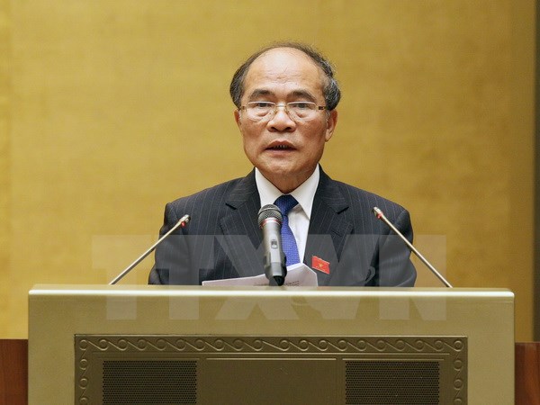 Hôm nay Quốc hội khóa XIII nước Cộng hòa xã hội chủ nghĩa Việt Nam khai mạc trọng thể kỳ họp thứ 9. Thay mặt Ủy ban thường vụ Quốc hội, tôi nhiệt liệt chào mừng các đồng chí lãnh đạo, nguyên lãnh đạo Đảng, Nhà nước, Mặt trận Tổ quốc Việt Nam, các bậc lão thành cách mạng, các vị đại biểu Quốc hội, các vị khách quý, các vị trong Đoàn ngoại giao, các tổ chức quốc tế đã đến dự phiên khai mạc. Xin gửi đến quý vị cùng toàn thể đồng bào, chiến sĩ cả nước lời chúc sức khỏe, hạnh phúc và thành công.