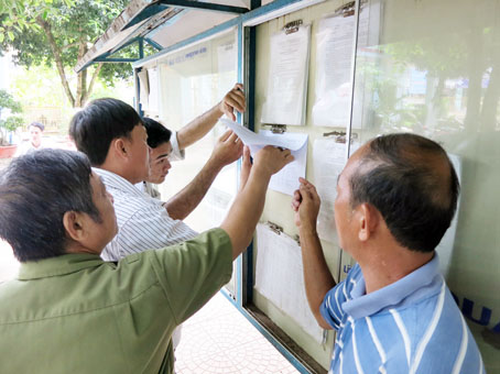 | Người dân xã Sông Thao (huyện Trảng Bom) xem xét danh sách thanh niên của xã trúng tuyển nghĩa vụ quân sự năm 2018. |