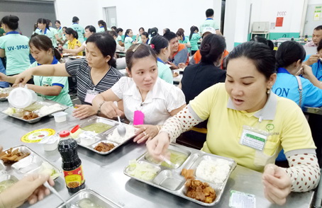 | Bữa ăn giữa ca có chất lượng của công nhân Công ty cổ phần Taekwang Vina Industrial (Khu công nghiệp Biên Hòa 2). |