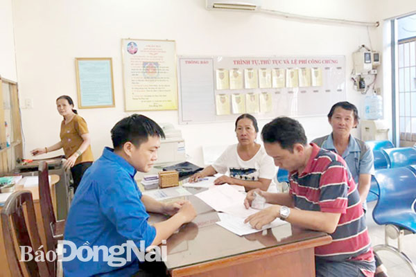 | Cán bộ công chức trẻ Sở Tư pháp hỗ trợ người dân giải quyết thủ tục hành chính tại Phòng Công chứng số 1, TP.Biên Hòa. Ảnh: N.HẠ |
