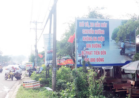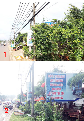 Báo Đồng Nai ngày 4-8-2018 phản ánh pa-nô tuyên truyền Luật Giao thông đường bộ được dựng trên quốc lộ 20 (đoạn qua ấp Thống Nhất, xã Phú Cường, huyện Định Quán) bị che khuất bởi cây xanh nên không phát huy tác dụng (ảnh 1).
