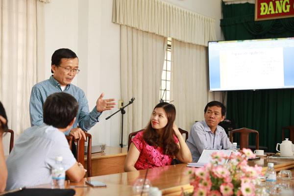 | Nhà báo Tăng Quỳnh (Báo Tuổi Trẻ) trao đổi đội ngũ phóng viên, biên tập viên của Báo Đồng Nai. Ảnh: Huy Anh |