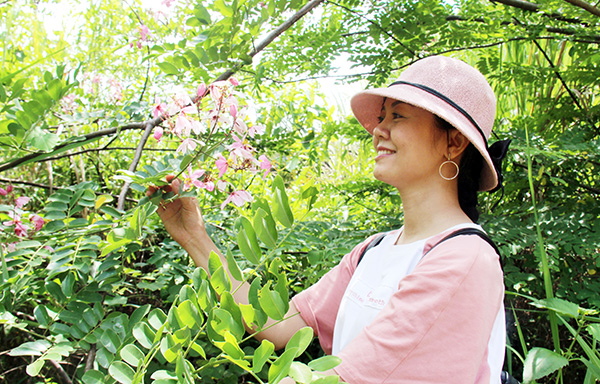Chị Ánh Nguyệt, một du khách đến từ P.An Bình (TP.Biên Hòa) chia sẻ: “Tôi khá ấn tượng trước vẻ đẹp của những tán hoa muồng đào ở Cát Tiên. Những cánh hoa màu hồng thắm khiến cho khung cảnh thêm phần thơ mộng giữa những tán rừng già, nhất là khi được băng rừng, đạp xe để khám phá vẻ đẹp của rừng nguyên sinh”.