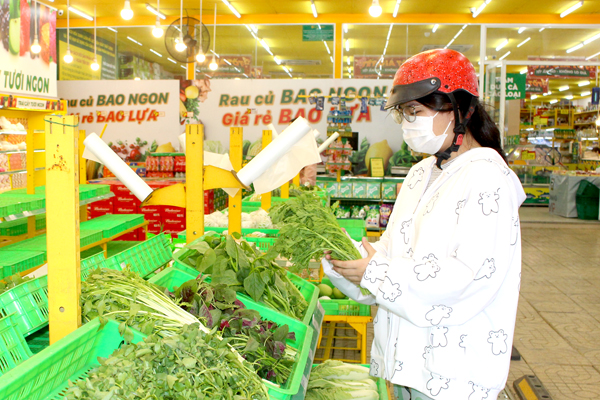 | Người dân xã An Phước, H.Long Thành mua rau tại cửa hàng Bách hóa xanh |