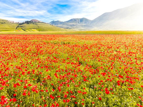Ngôi làng nhỏ Castelluccio là khu dân cư cao nhất trên dãy núi Apennine, miền Trung Italy. Điều khiến du khách bị thu hút ở ngôi làng chỉ hơn 150 người này là vẻ đẹp hoang sơ, đầy kỳ bí. Cảnh sắc nơi đây đẹp nhất vào độ đầu Xuân khi cả ngôi làng ngập tràn trong hàng ngàn bông hoa anh túc đỏ và hoa cải dầu vàng khoe sắc rực rỡ. Giao thông nơi đây cũng được bảo trì thường xuyên với hệ thống đường bộ thuận tiện cho việc đi lại. Du khách thích mạo hiểm cũng có thể thử những cung đường núi non trùng điệp.