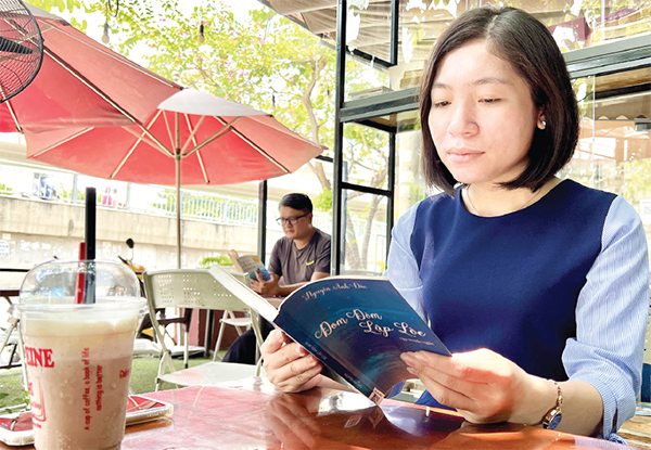 | Đọc sách tại quán cà phê sách Kafefine Coffee ở đầu đường Nguyễn Văn Trị. Ảnh: Đăng Tùng |