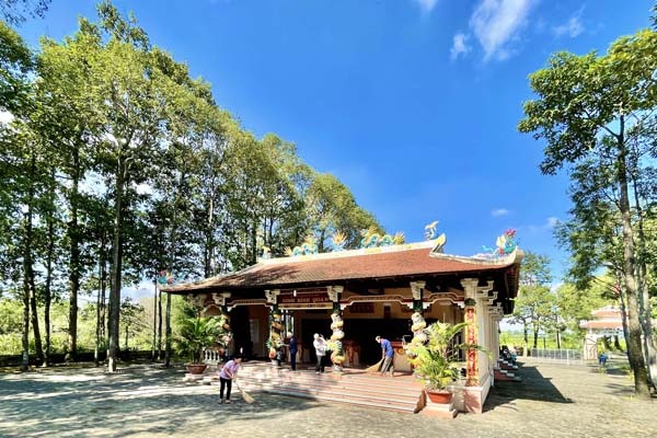 | Ban Quản lý, Ban Quý tế đình Bình Quan (P.Hiệp Hòa, TP.Biên Hòa) quét dọn đình sau những ngày mưa gió, giữ sân đình luôn sạch sẽ |
