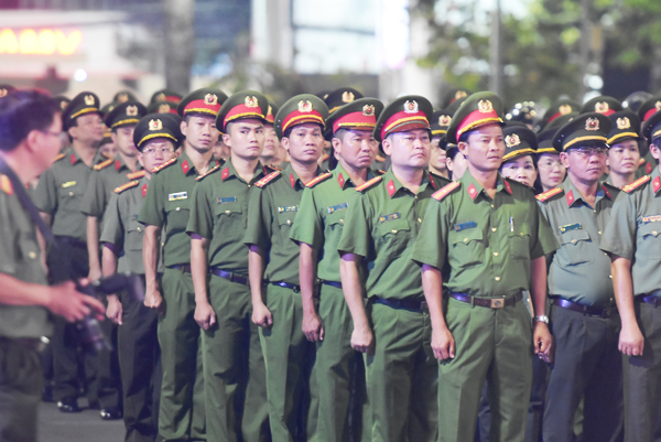 | Các cán bộ chỉ huy của Tổ công tác 161 trong buổi lễ ra quân tuần tra, kiểm soát vào tối 17-10 |