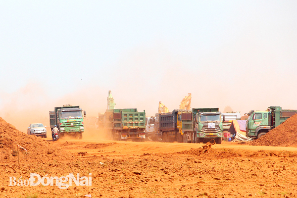 | Tiến độ thi công hạng mục san nền, thoát nước dự án Sân bay Long Thành giai đoạn 1 có nguy cơ bị ảnh hưởng nếu không được bàn giao toàn bộ mặt bằng sớm. Ảnh: P.TÙNG |