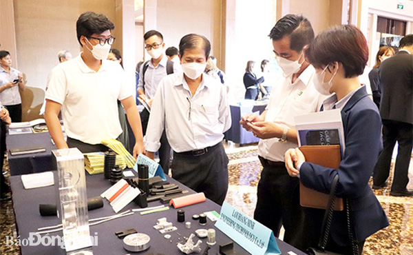 | Các doanh nghiệp Nhật Bản, Đồng Nai tìm hiểu sản phẩm của nhau để liên kết sản xuất và xuất khẩu. Ảnh: K.Minh |
