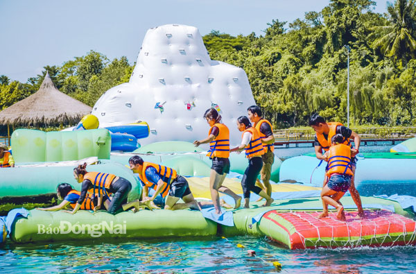 | Khách du lịch tham gia trò chơi dưới nước tại Khu du lịch Suối Mơ, một điểm du lịch nổi tiếng tại H.Tân Phú. Ảnh: Thủy Mộc |