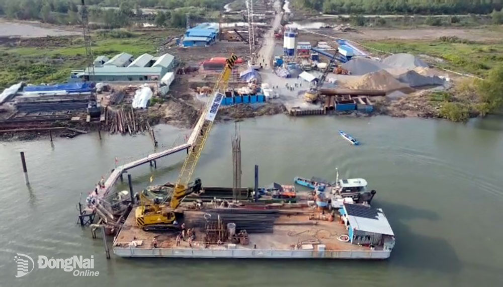 | Thi công cầu Nhơn Trạch, hạng mục quan trọng nhất của dự án 1A. Ảnh: P.Tùng |