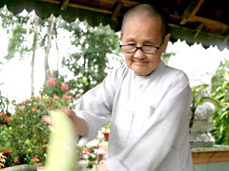| Sư cô Thích nữ Diệu Pháp chuẩn bị thực phẩm cho một bữa cơm từ thiện. Ảnh: S. THAO |
