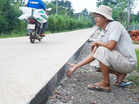 Theo phản ánh của người dân, mật độ xe cộ đi lại đông đúc, trong khi chất lượng mặt đường chưa đảm bảo đã khiến việc đi lại của mọi người gặp nhiều khó khăn. Cụ thể, khoảng cách giữa nền đất với mép đường cao khoảng 20cm, có đoạn cao gần 30cm, nhưng đơn vị thi công không đắp đất nên gây nguy hiểm cho người đi đường. Nhiều vụ TNGT, va quẹt xảy ra nơi đây do 2 xe tránh nhau bị hụt chân dẫn đến ngã xuống rãnh sâu.