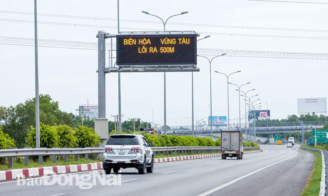 | Bảng thông tin điện tử hiện đại về hướng dẫn, phân lưồng giao thông trên đường cao tốc TP.Hồ Chí Minh - Long Thành - Dầu Giây đoạn qua huyện Long Thành. Ảnh: THANH HẢI |