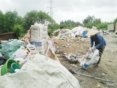 Một số người dân địa phương cho hay, mỗi ngày có khoảng 3-5 xe rác từ nhiều nơi đưa về đây tập kết. Bãi rác này là điểm “trung chuyển” rác thải sau khi thu gom ở xã và khu vực lân cận chuyển đến. Sau khi phân loại, một số loại rác có thể tận dụng được, như: bao ny-lông, thùng nhựa, chai nhựa…, sẽ được xe tải đến chở đi tiêu thụ. Hàng ngày, ngoài đội ngũ tài xế chở rác, tại đây còn có một số người làm nhiệm vụ phân loại rác là người nhà của ông C.