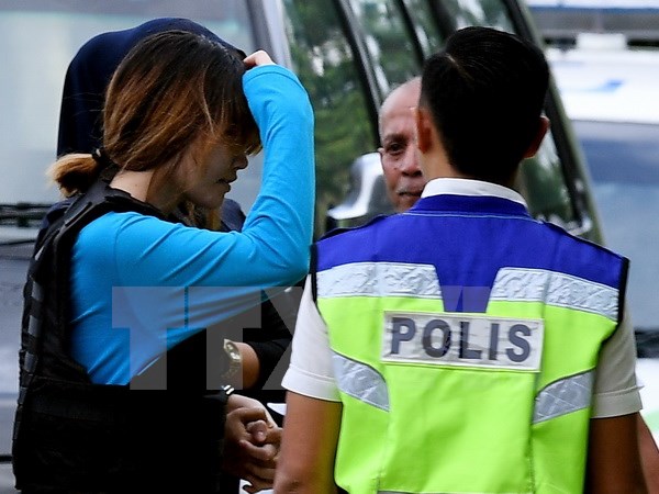 | Nghi phạm Đoàn Thị Hương (giữa, trái) được áp giải tới tòa án ở Sepang, Malaysia ngày 30/5 vừa qua. (Ảnh: AFP/TTXVN) |