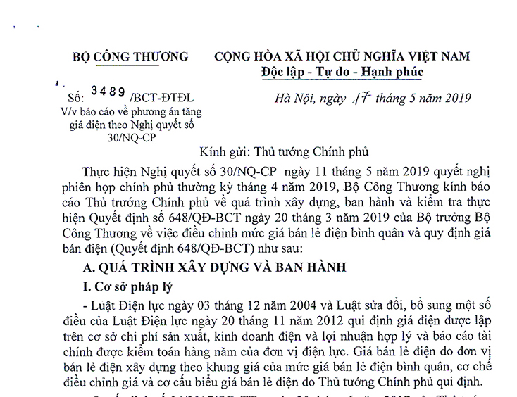 Bộ Công thương báo cáo về phương án tăng giá điện theo Nghị quyết