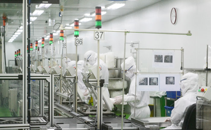| Các khu công nghiệp trên địa bàn tỉnh hiện đang rất hấp dẫn đối với các doanh nghiệp có nhu cầu đầu tư sản xuất kinh doanh. Trong ảnh: Công nhân trên chuyền sản xuất tại Công ty TNHH Terumo BCT Việt Nam, vốn đầu tư Nhật Bản chuyên sản xuất thiết bị y tế tại Khu công nghiệp Long Đức, H.Long Thành |