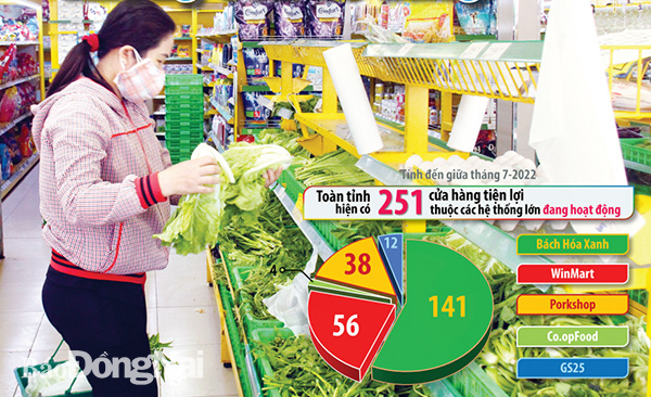 | Trên địa bàn tỉnh hiện có 251 cửa hàng tiện lợi thuộc các hệ thống lớn. Trong ảnh: Người tiêu dùng chọn mua các loại rau xanh tại một cửa hàng tiện lợi ở TP.Biên Hòa. Ảnh: HẢI QUÂN - Đồ họa: HẢI HÀ |