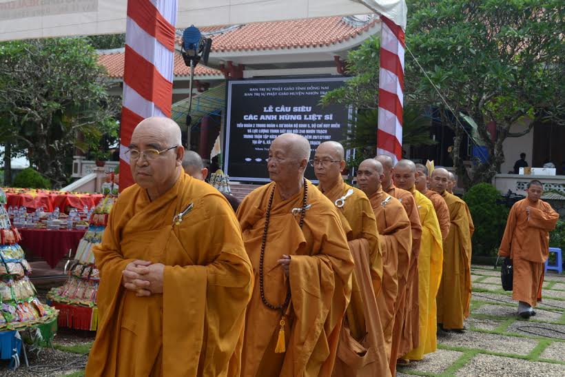 (ĐN) - Chiều 30-8, tại Đền thờ liệt sĩ huyện Nhơn Trạch, Ban Tôn giáo và Ban trị sự Hội Phật giáo Việt Nam tỉnh Đồng Nai đã phối hợp với Huyện uỷ - HĐND - UBND - Uỷ ban MTTQ huyện Nhơn Trạch tổ chức Đại lễ cầu siêu tưởng niệm anh linh của hơn 100 anh hùng liệt sĩ vừa mới được tìm thấy tại xã Long Thọ vào ngày 18-8.
