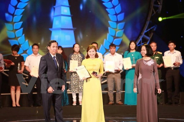 | Đại diện báo Điện tử VietnamPlus nhận giải B Giải Báo chí Quốc gia 2015. (Ảnh: Minh Sơn/Vietnam+) |