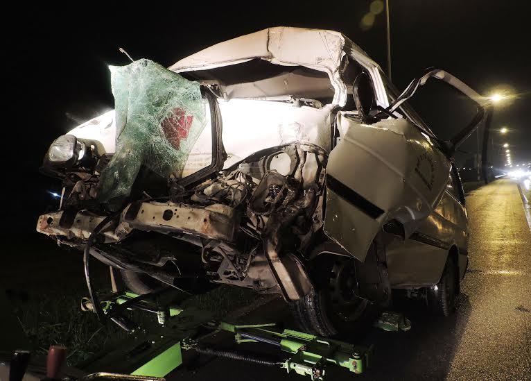 | Đầu chiếc xe cứu thương bị biến dạng sau cú va chạm mạnh |