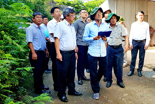 | Phó chủ tịch UBND tỉnh Võ Văn Chánh (thứ 3 từ phải qua) đang kiểm tra thửa đất trên bản đồ với thực tế |