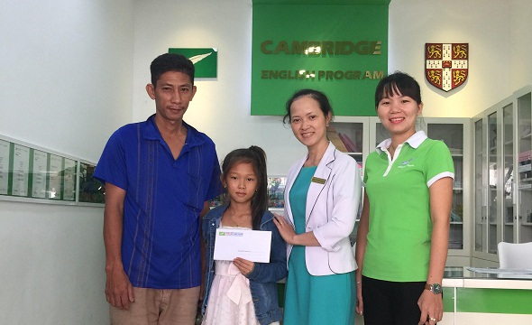 | Đại diện Trung tâm Ngoại ngữ Biên Hòa trao 5 triêu đồng cho gia đình ông Tuấn |