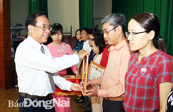 | Các cơ quan, đơn vị đạt chuẩn văn hóa được nhận giấy công nhận do Liên đoàn Lao động TP.Biên Hòa trao tặng. Ảnh: V.TRUYÊN |