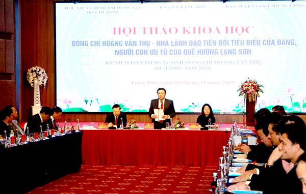 Ngày 3-11, tại TP.Lạng Sơn, Học viện Chính trị quốc gia Hồ Chí Minh chủ trì phối hợp với Tỉnh ủy Lạng Sơn và Ban Tuyên giáo Trung ương tổ chức Hội thảo khoa học Đồng chí Hoàng Văn Thụ - nhà lãnh đạo tiền bối tiêu biểu của Đảng, người con ưu tú của quê hương Lạng Sơn nhân kỷ niệm 110 năm ngày sinh đồng chí Hoàng Văn Thụ (4-11-1909 - 4-11-2019).