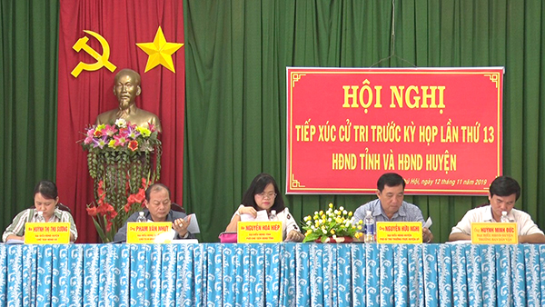 Phát biểu tại buổi tiếp xúc cử tri, Phó chủ tịch UBND tỉnh Nguyễn Hòa Hiệp cảm ơn sự quan tâm của người dân đối với các vấn đề phát triển kinh tế, đảm bảo an sinh xã hội. Phó chủ tịch UBND tỉnh cho rằng, những vấn đề người dân kiến nghị sẽ được các đại biểu HĐND tỉnh, huyện ghi nhận đầy đủ và trình tại kỳ họp HĐND tỉnh sắp tới.