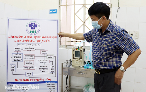 | Lãnh đạo Trung tâm Kiểm soát bệnh tật tỉnh kiểm tra khu cách ly tại Bệnh viện đa khoa khu vực Long Thành |