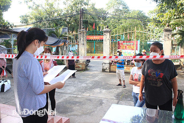 | Nhân viên y tế trạm y tế lưu động P.Tân Phong, TP.Biên Hòa giải quyết hồ sơ cho người dân liên quan đến dịch bệnh Covid-19. Ảnh: Hạnh Dung |