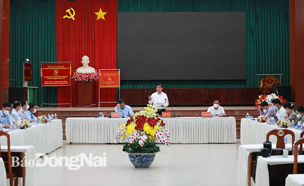 | Bí thư Huyện ủy Long Thành Dương Minh Dũng báo cáo tại buổi làm việc |