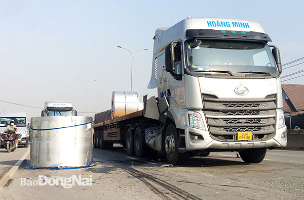 | Tuyến quốc lộ 51, đoạn qua TP.Biên Hòa có tình hình trật tự an toàn giao thông phức tạp. Trong ảnh: Xe tải làm rơi cuộn thép xuống đường gây mất an toàn giao thông vào ngày 8-4 (ảnh tư liệu) |