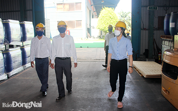 | Đoàn kiểm tra việc thực hiện công tác an toàn vệ sinh lao động tại Công ty TNHH Shihan Vina - TP.Biên Hòa (Ảnh: Lan Mai) |