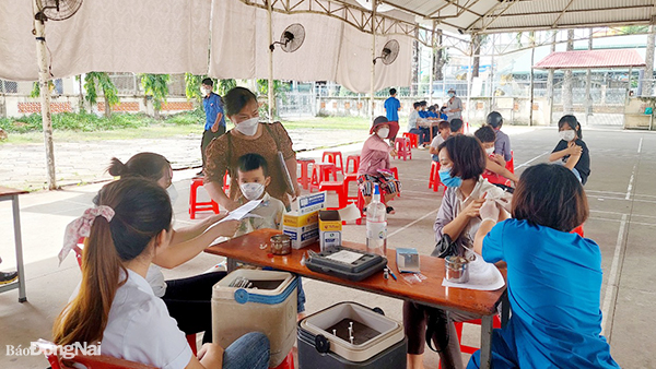 | Đông đảo người dân đi tiêm vaccine phòng Covid-19 ở các điểm tiêm tại TP.Biên Hòa |