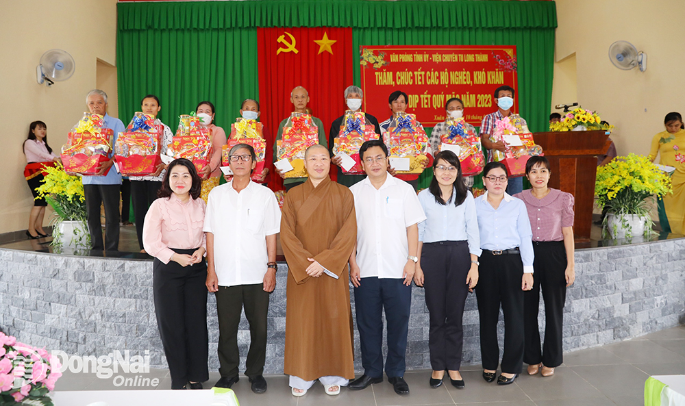 (ĐN) - Nằm trong các hoạt động chăm lo Tết cho người nghèo, sáng 10-1, Văn phòng Tỉnh ủy cùng Viện Chuyên tu Long Thành đã có buổi trao tặng quà cho người dân có hoàn cảnh khó khăn tại xã Xuân Phú, H.Xuân Lộc. Tham gia đoàn có thượng tọa Thích Thiện Thuận, Phó ban trị sự Giáo hội Phật Giáo tỉnh Bà Rịa - Vũng Tàu, Trụ trì Viện Chuyên tu Long Thành; Tổng biên tập Báo Đồng Nai Đào Văn Tuấn; Trưởng phòng Kinh tế - xã hội, Văn phòng Tỉnh ủy Trần Thanh Đan Châu.