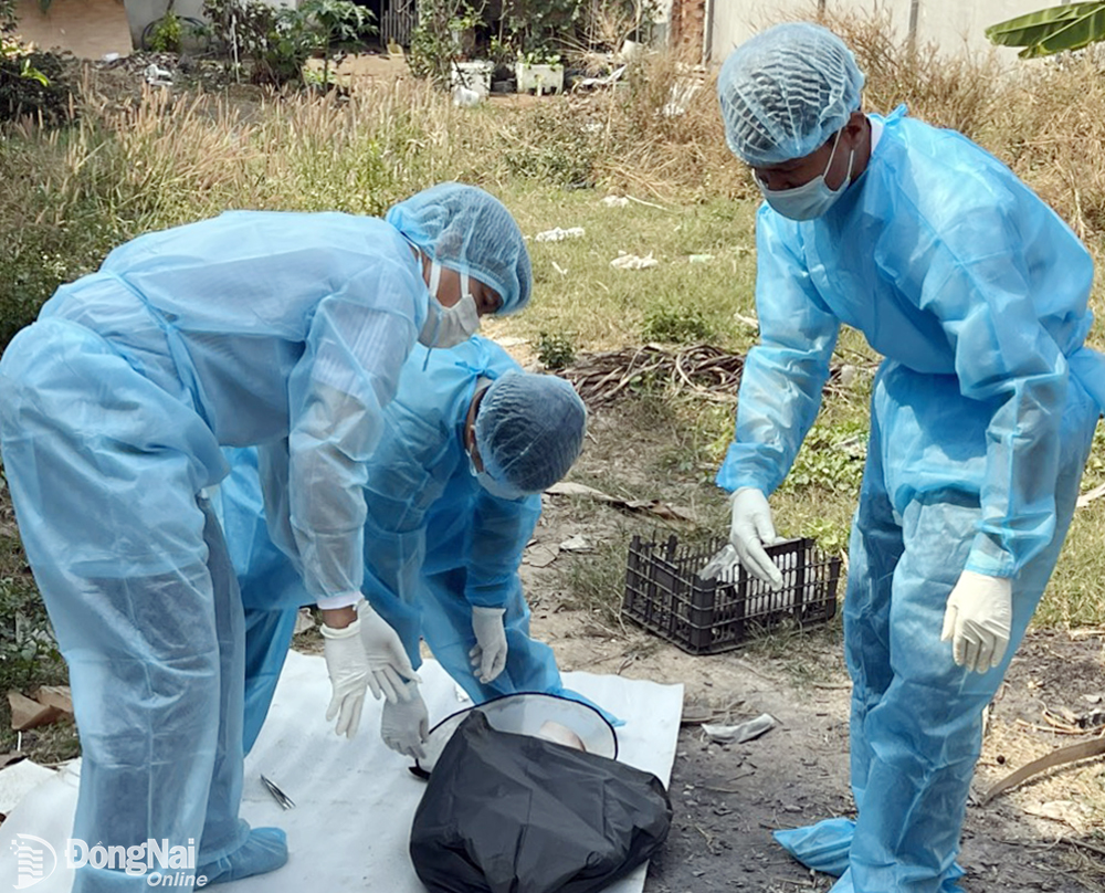 | Lực lượng chức năng thực hiện tiêu hủy con chó bị mắc bệnh dại ở xã Tây Hòa (H.Trảng Bom). Ảnh: Hoàn Lê |