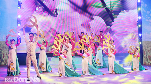 | Một tiết mục nghệ thuật do Nhà hát Nghệ thuật Đồng Nai biểu diễn trực tuyến chào mừng 75 năm Cách mạng Tháng Tám và Quốc khánh 2-9. Ảnh: Ly Na |