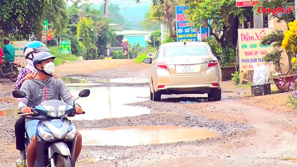 2 năm trôi qua, nhưng đoạn đường vào ấp 9/4, xã Hưng Lộc, huyện Thống Nhất hư hỏng vẫn chưa được sửa chữa, trở thành vũng nước lớn như ao mỗi khi mưa xuống.