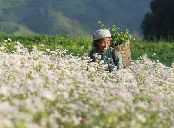 | Nếu đi phượt Hà Giang vào dịp cuối thu (khoảng cuối tháng 10, đầu tháng 11), sắc vàng của những bông lúa chín trên ruộng bậc thang sẽ nhường chỗ cho màu trắng hồng ngút ngàn của những cánh hoa Tam giác mạch. Hãy sẵn sàng máy ảnh để ghi lại vẻ đẹp miên man, hoang dại bao phủ khắp cao nguyên. Ảnh: Mai Xuân Tùng |