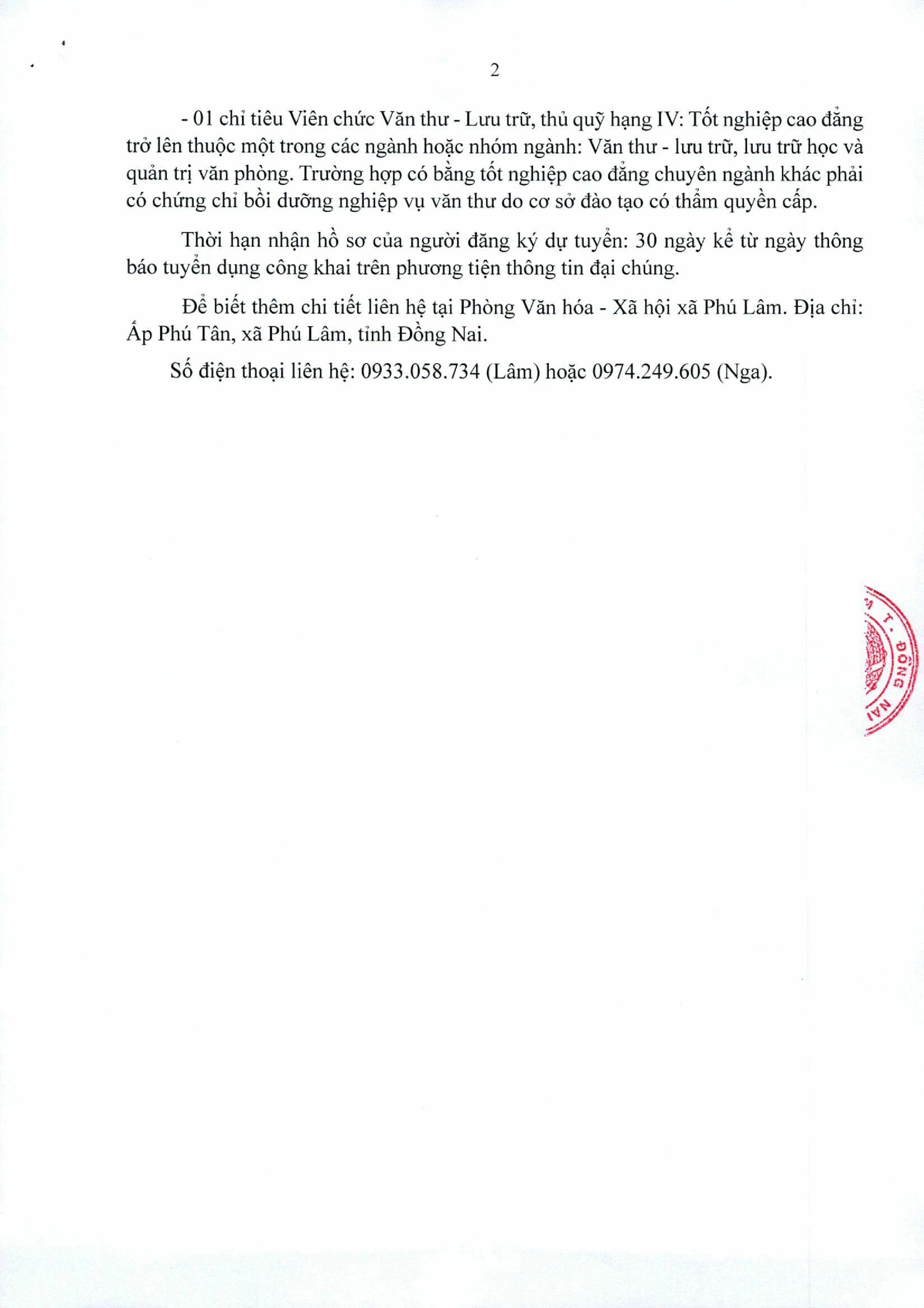 UBND xã Phú Lâm thông báo tuyển dụng
