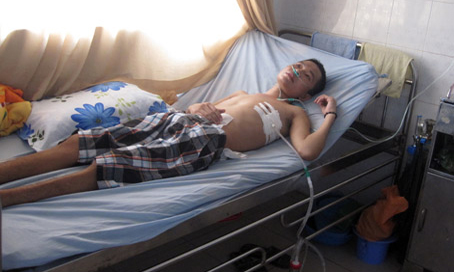 | Anh Tùng đang nằm điều trị tại Bệnh viện phổi Đồng Nai. Ảnh: Đ.Ngọc |