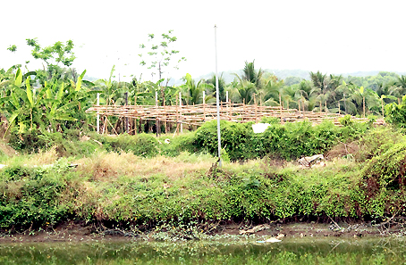 | Một trong những khung nhà chòi tại khu vực ấp Sông Mây được dựng sẵn để chờ tiền đền bù |