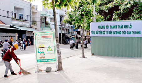Không chỉ bảo vệ môi trường khỏi bị ô nhiễm, chủ đầu tư công trình còn treo bảng với nội dung: “Chúng tôi thành thật xin lỗi vì sự bất tiện có thể xảy ra trong thời gian thi công”. Thiết nghĩ, đó là một lời xin lỗi cần thiết và trân trọng đối với người dân xung quanh, cũng như người đi đường. Việc ứng xử có văn hóa và trách nhiệm này của đơn vị thi công đã khiến người dân chúng tôi rất hài lòng.