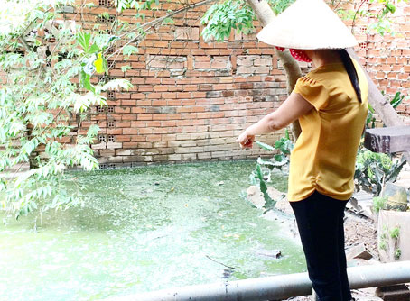 | Phía sau nhà bà Phạm Thị Oanh bị ngập úng vì nước thải từ cơ sở sản xuất chà bông tràn sang. Ảnh: P.LIỄU |